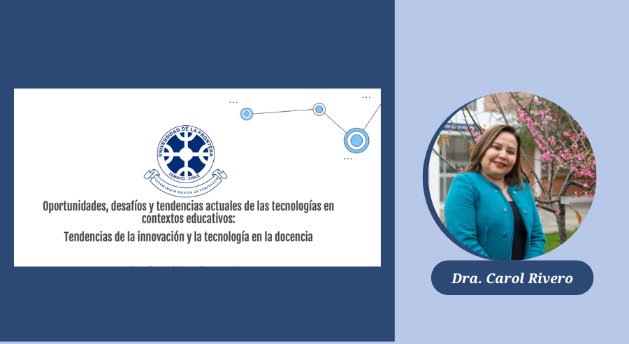 La Dra. Carol Rivero Panaqué fue invitada a participar en el encuentro académico “Oportunidades, desafíos y tendencias actuales de las tecnologías digitales en contextos educativos” organizado el 23 de agosto por la Universidad de la Frontera (UFRO) de Temuco, Chile.