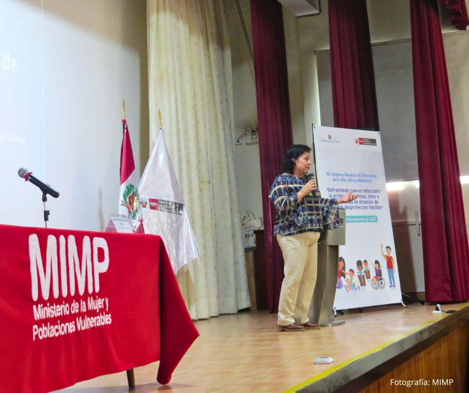 El 20 de noviembre, la Mag. Patricia González Simón participó como conferencista en el XX Congreso Nacional de Defensorías de la Niña, Niño y Adolescente "Enfrentando nuevos retos para la protección de niñas, niños y adolescentes en situación de riesgo de desprotección familiar", organizado por el Ministerio de la Mujer y Poblaciones Vulnerables.
